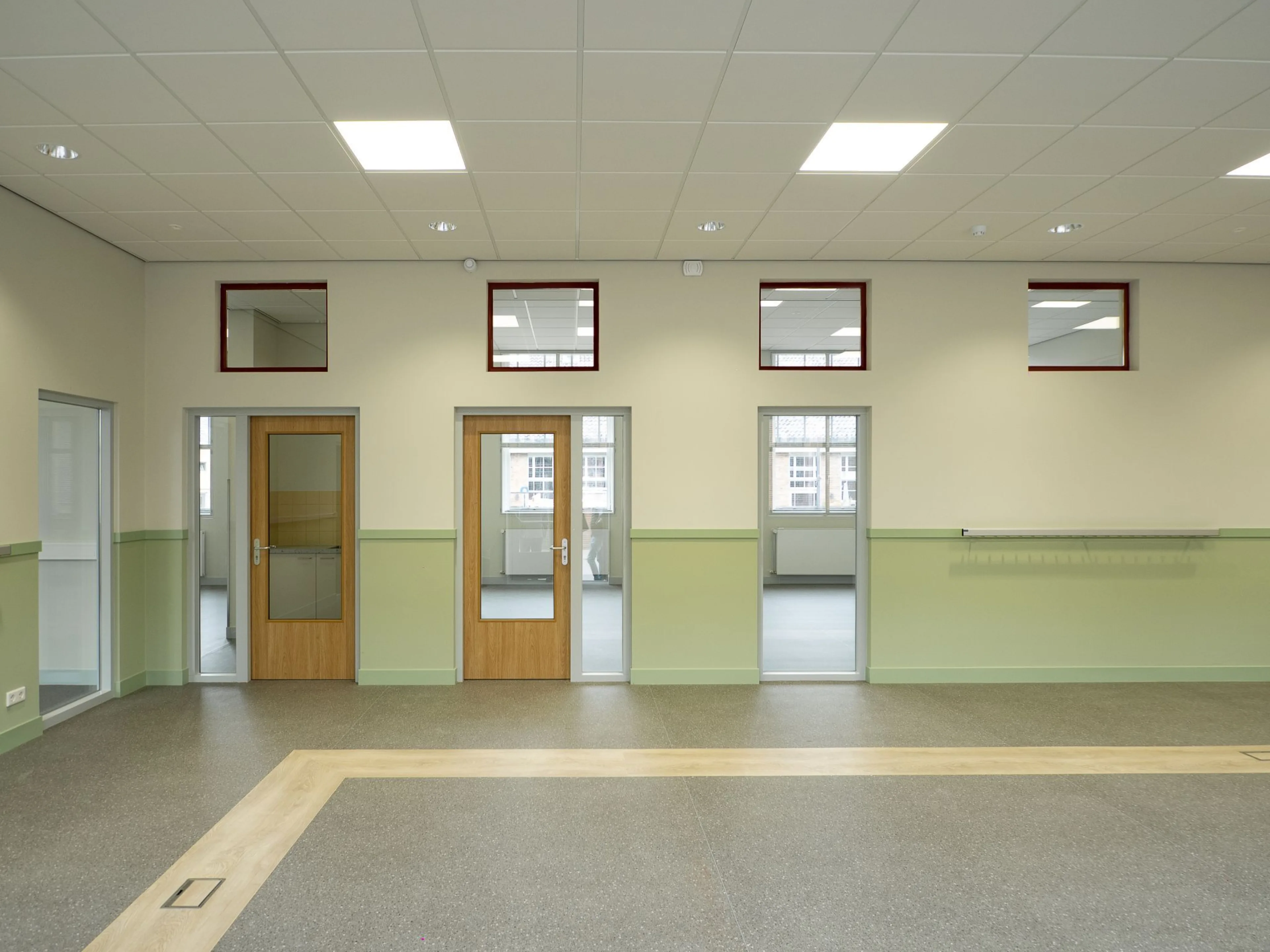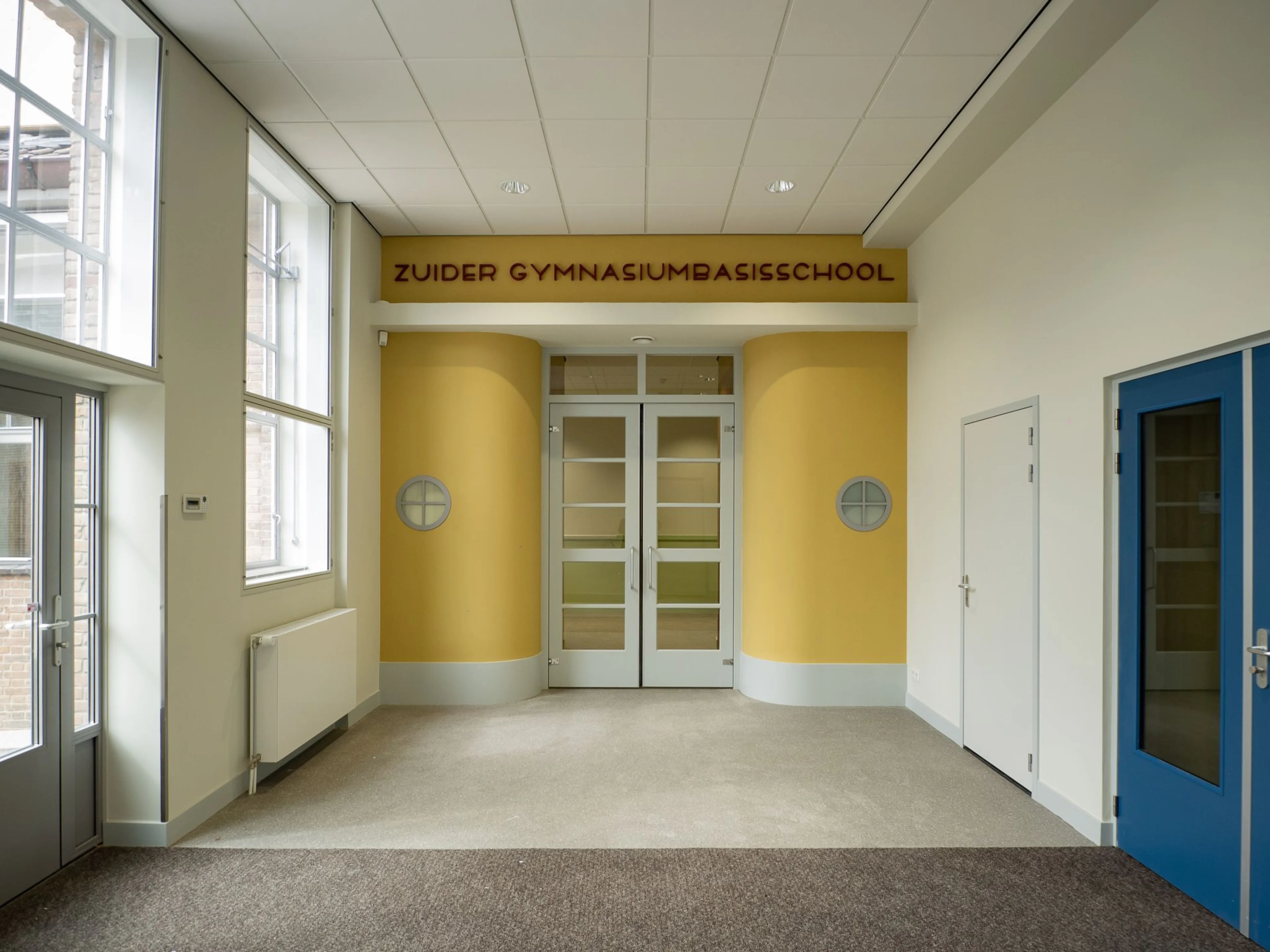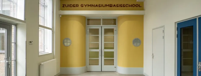 De werkzaamheden aan het gedeelte dat is bestemd voor de Zuider gymnasiumbasisschool begonnen als eerste en zijn in mei 2025 voltooid. De look van dit ‘nieuwe’ deel sluit goed aan op die van de rest van de school. Mooie oude details zijn behouden en goed zichtbaar verwerkt in de nieuwe ruimtes. Tegelijkertijd is de ruimte voorzien van alle moderne gemakken en faciliteiten. Ook heeft de Zuider gymnasiumbasisschool nu een eigen ingang en schoolplein. Later deze maand verhuizen de basisschoolleerlingen naar hun nieuwe onderkomen.