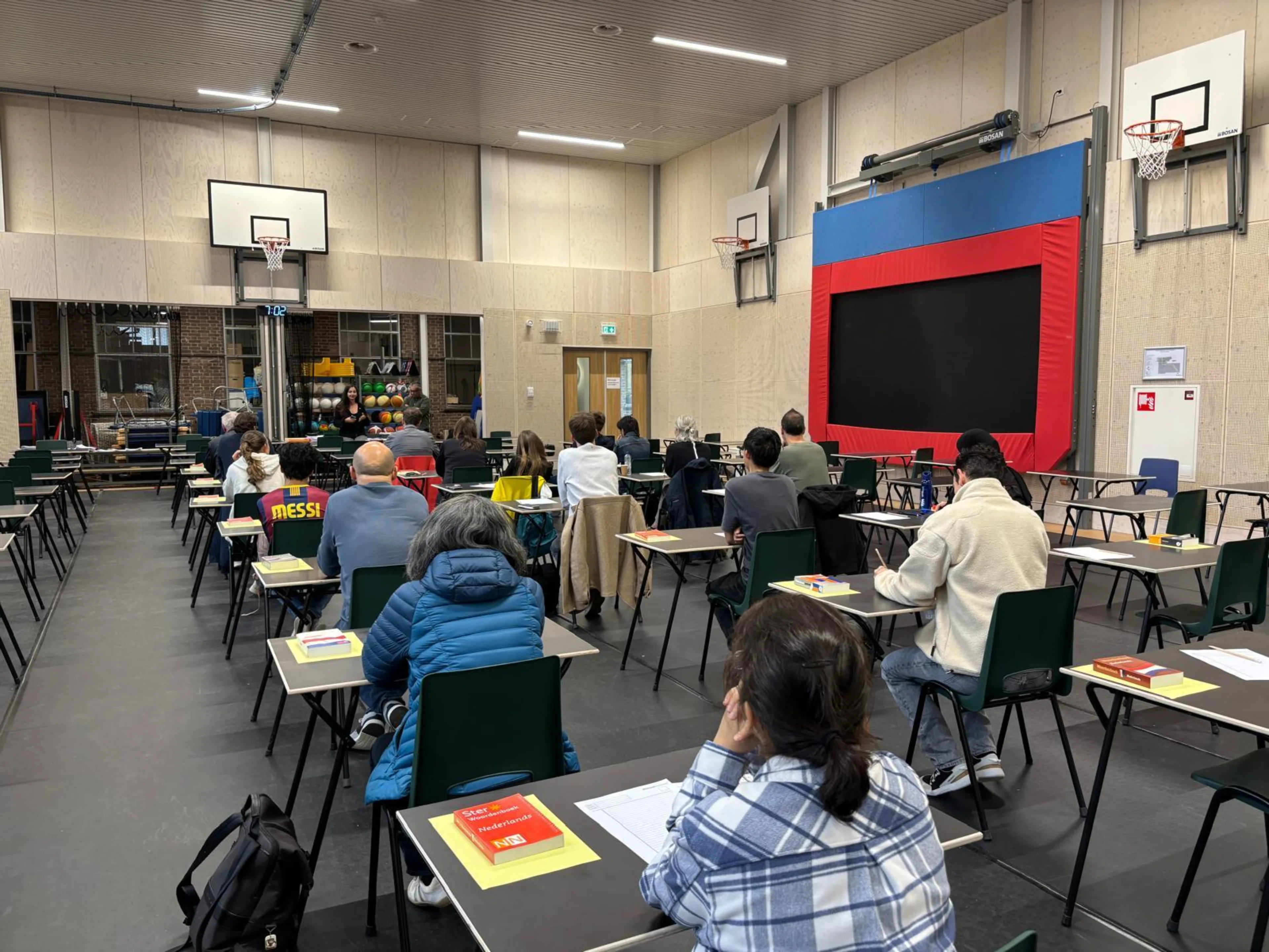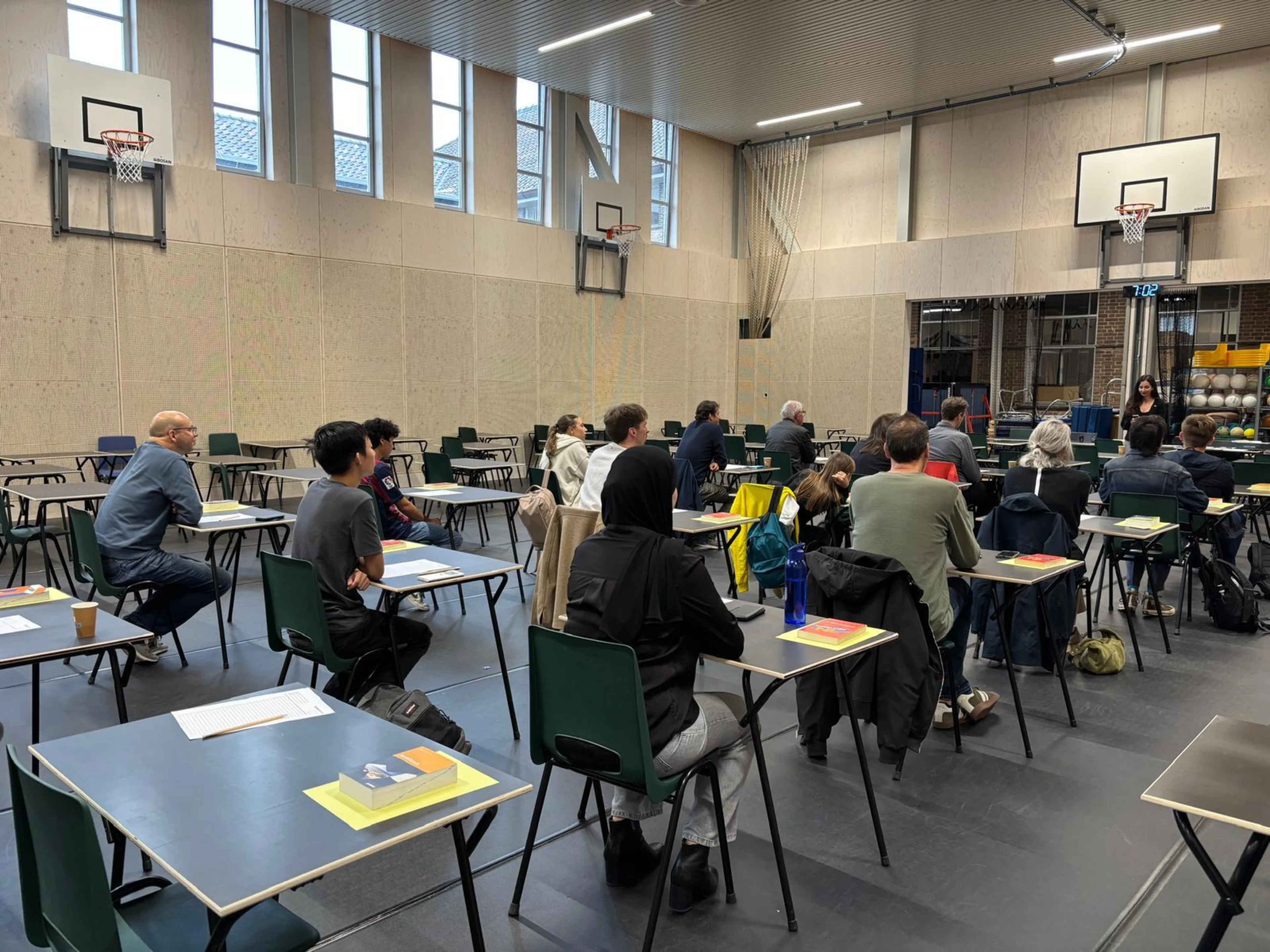 Het examen vond plaats op maandag 26 mei in de palaestra, de gymzaal die nog in de examenopstelling stond. Er was veel animo voor het examen: ruim dertig leerlingen, oud-leerlingen, ouders, wijkbewoners en andere geïnteresseerden kwamen speciaal ervoor in de avond naar school toe. De opening vond plaats door Mina Morkoç, Rotterdams gemeenteraadslid van GroenLinks met de thema’s klimaat, energietransitie en duurzaamheid in haar portefeuille. Daarna gingen de ‘examenkandidaten’ aan de slag met een grote reeks vragen over de huidige staat van het klimaat en oplossingen voor de toekomst. Na een uur zat het erop en werden de examens ingenomen. Winood Rampersad, conrector en coördinator van het Klimaatexamen op het Zuider Gymnasium, zal deze allemaal officieel nakijken en de deelnemers per mail laten weten welk cijfer ze hebben behaald.