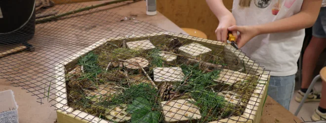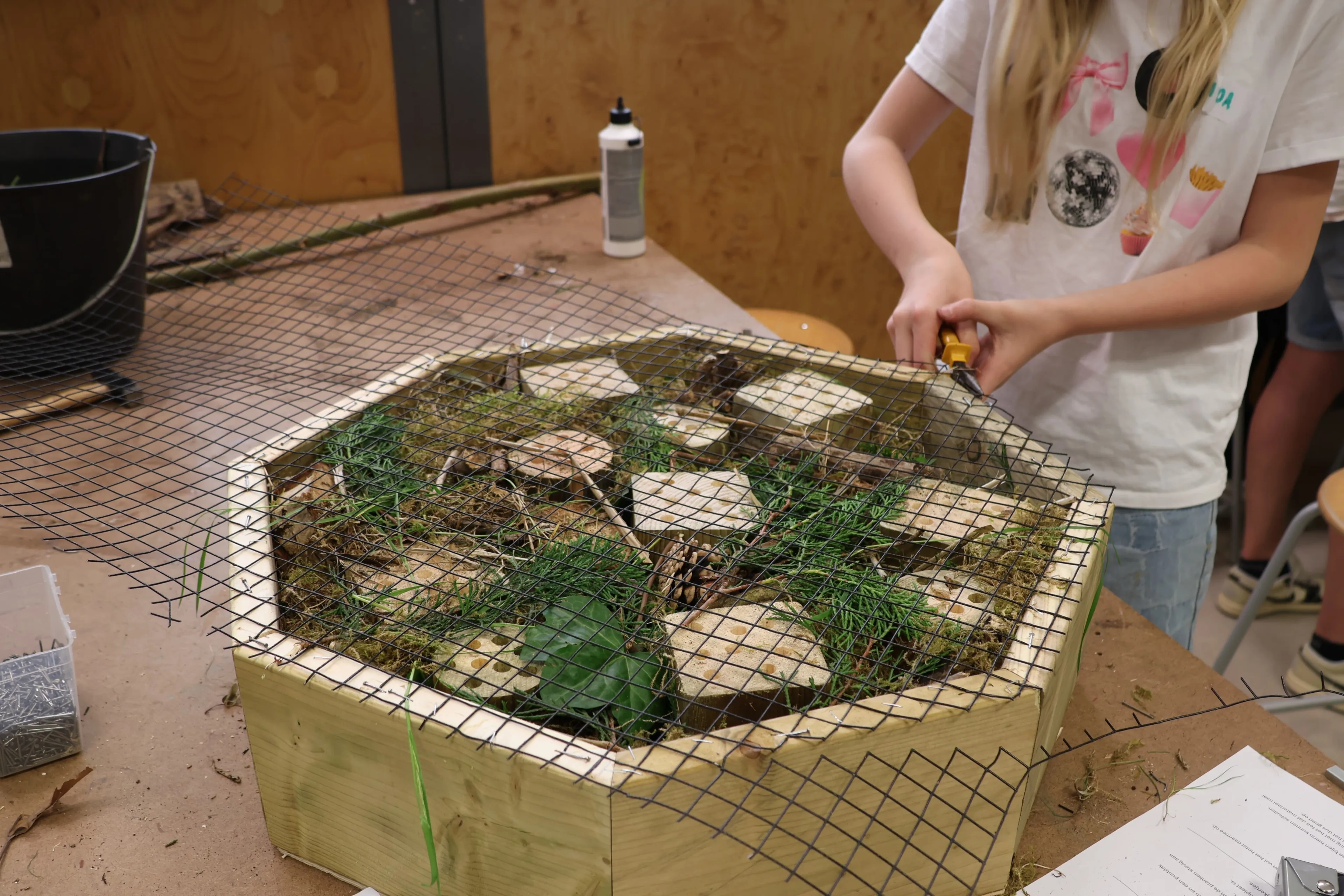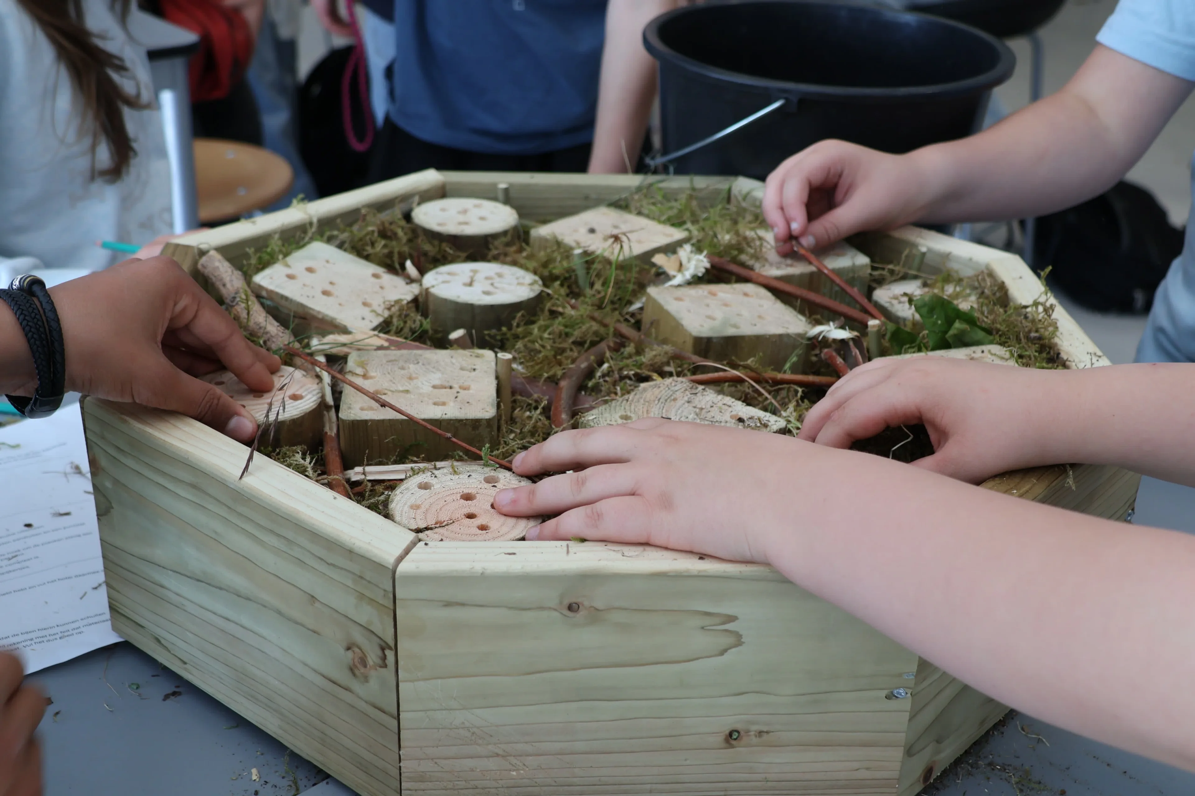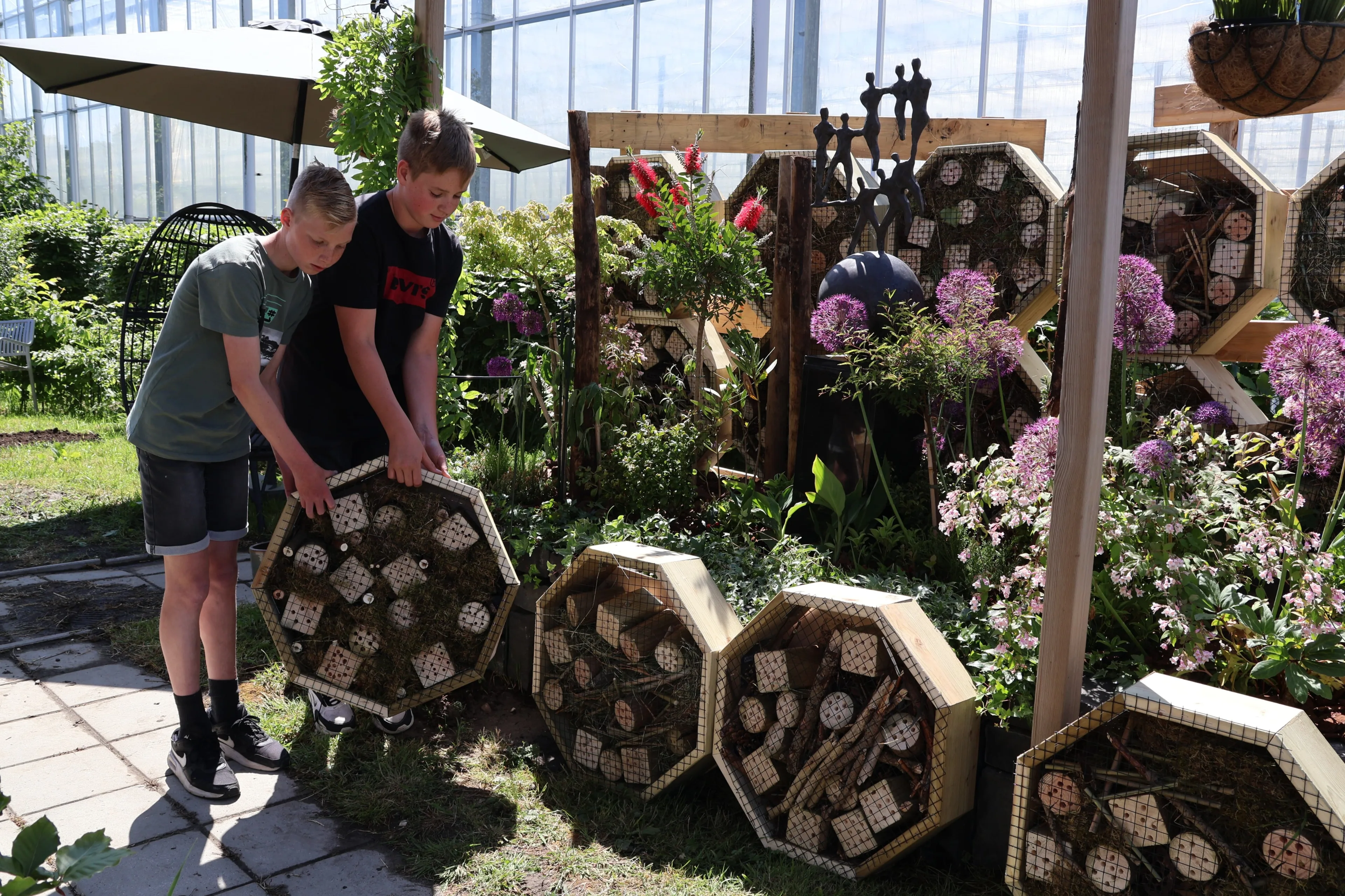 Voor de bijen- en insectenhotels verzamelden de leerlingen materiaal om de verschillende kamers van de ‘B&B’s’ te vullen in De Levende Tuin, de educatieve schooltuin van MBS. Daarna zetten zij de kamers van de B&B in groepjes in elkaar en konden hun kamers vullen. Ook kwamen er een aantal leerlingen van basisschool de Klimophoeve op bezoek en maakten een eigen B&B met de hulp van de leerlingen van Melanchthon Business School.