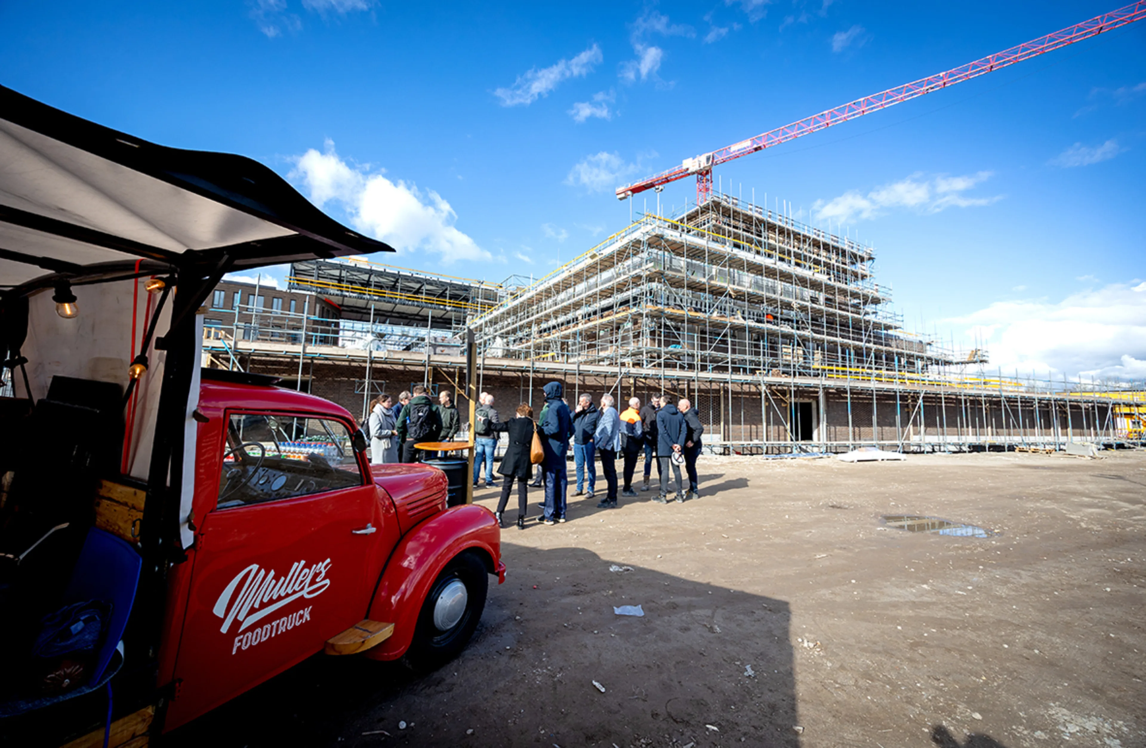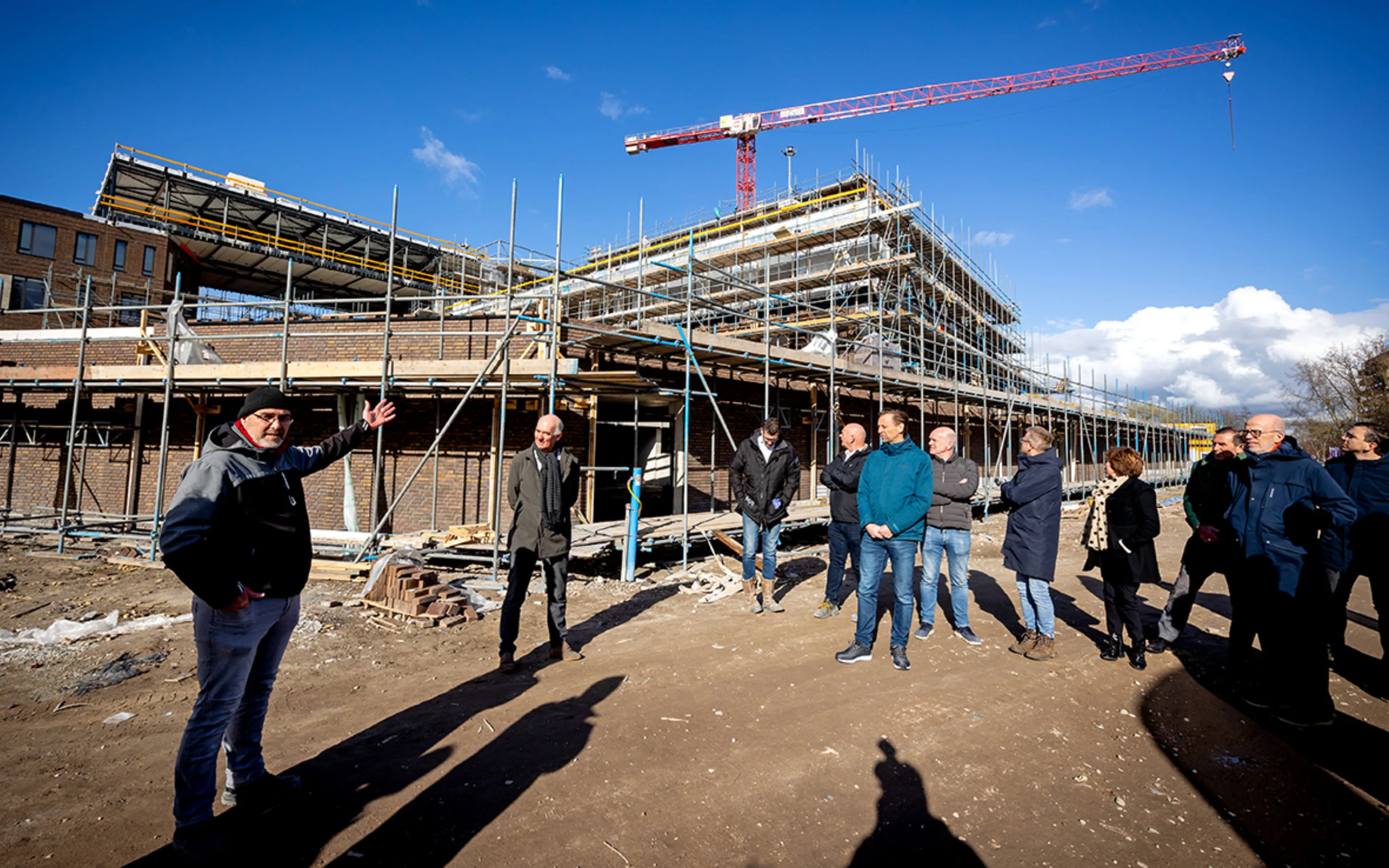 Marc Mittelmeijer, de voorzitter van de raad van bestuur van CVO, sprak vol bewondering over de voortgang van het project. Hij benadrukte de complexiteit van de bouw en de enorme prestatie van alle betrokkenen. ‘Het gebouw is nu al een echte eyecatcher. We zijn zo’n 7 jaar geleden begonnen met de voorbereidingen. In het onderwijs hebben we het vaak over hoge verwachtingen, hier zetten we iets neer van formaat. Wij geloven dat als je samen iets doet, je dat ook iets brengt. Het belooft een fantastische plek te worden. Veel dank aan iedereen die hier keihard aan werkt.’ Onder het genot van een hapje en een drankje werd vervolgens stilgestaan bij de voortgang van de bouw en de betekenis van het nieuwe gebouw voor Rotterdam-Zuid. 'Voor de kinderen en Rotterdam-Zuid wordt dit een belangrijke plek. Zoveel mogelijk leerlingen op Zuid kunnen ook echt op Zuid naar school gaan. En pal naast De Kuip, dat past natuurlijk bij beide scholen', aldus Marc Mittelmeijer.