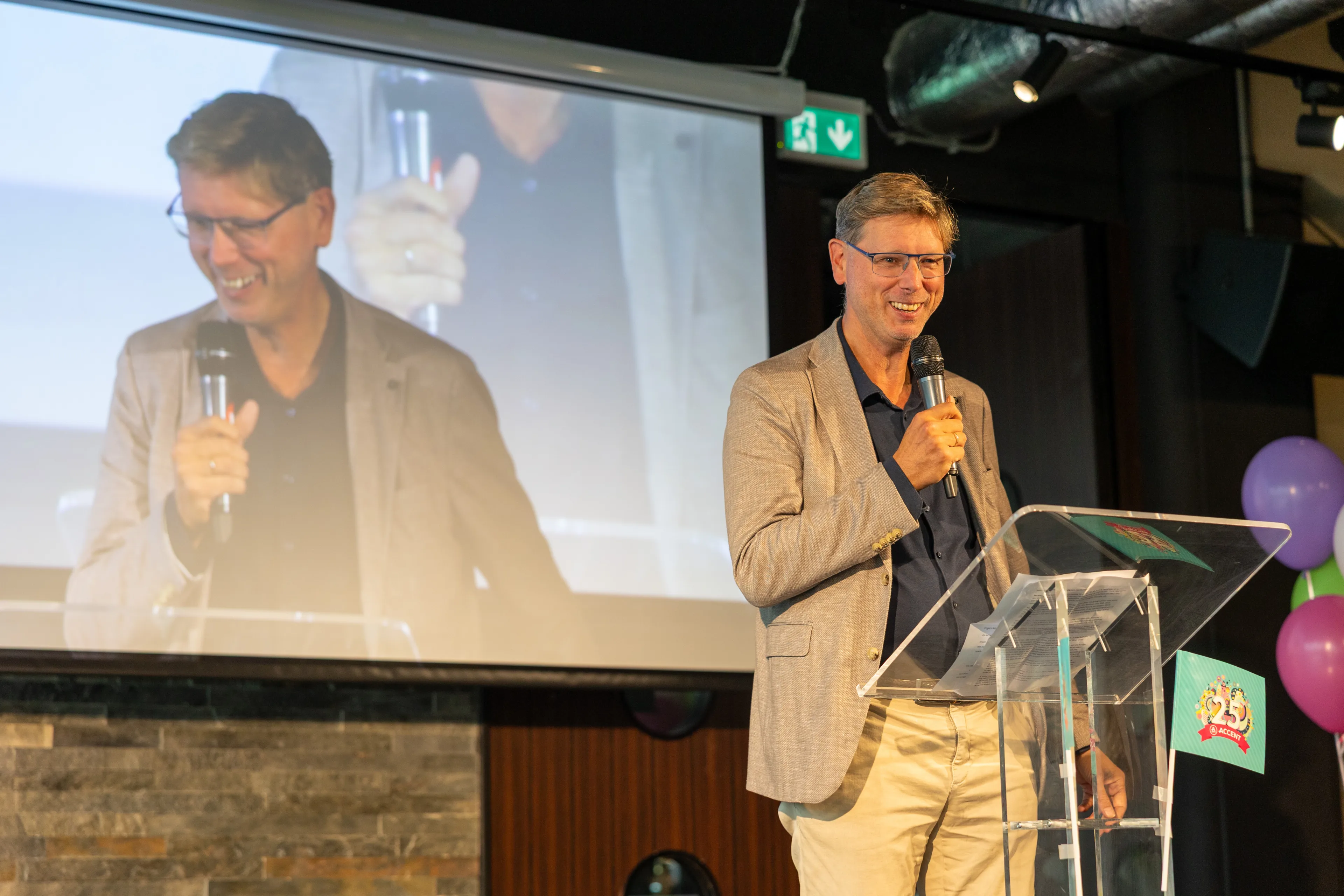 Accent bestaat 25 jaar en dat is het hele jaar door gevierd met leerlingen, medewerkers en partners. Het jubileumjaar werd feestelijk afgetrapt op 7 januari om 8 uur met een videoboodschap voor alle medewerkers.