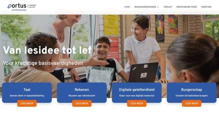 Portus scholengroep werkt dagelijks met leerlingen en docenten aan de basisvaardigheden taal, rekenen, burgerschap en digitale geletterdheid. Wat de school doet, leert en ontwikkelt, delen zij graag met elkaar en anderen. Dit om elkaar te versterken in de maatschappelijke opdracht waar het onderwijs voor staat.