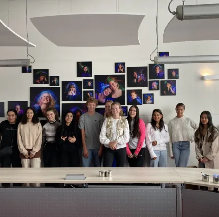 Bestuurders Marc Mittelmeijer en Ton Bestebreur namen op 5 juli 2023 een bijzonder cadeau voor het jubilerende CVO in ontvangst: een wandmozaïek met artistieke lichtportretten van leerlingen.