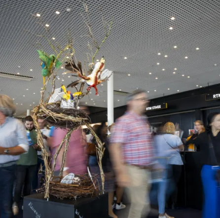 Het idee komt voort uit ons oude Schreuderschool logo (een uitvliegende vogel) en ons huidige project over Vogels en Insecten. We besloten het proces van leren te benaderen vanuit dit perspectief. De vakken Kunst, Textiele Werkvormen, Groen en Techniek werkten samen om het object vorm te geven. Leerlingen deden timmerwerk, plakten, viltten en voegden teksten toe aan de sokkel. Groenleerlingen maakten en bevestigden een nest aan de sokkel met betonijzer. De sokkel symboliseert de aarde, waarin iedereen kan wortelen en heeft tevens het karakter van een schoolbord. Het geheel beeldt drie stadia van groei af op drie etages, net zoals onze diverse en kleurrijke leerlingen. Het staat voor de cirkel van het leven, waarin onze leerlingen als jongvolwassen vogels uitvliegen.